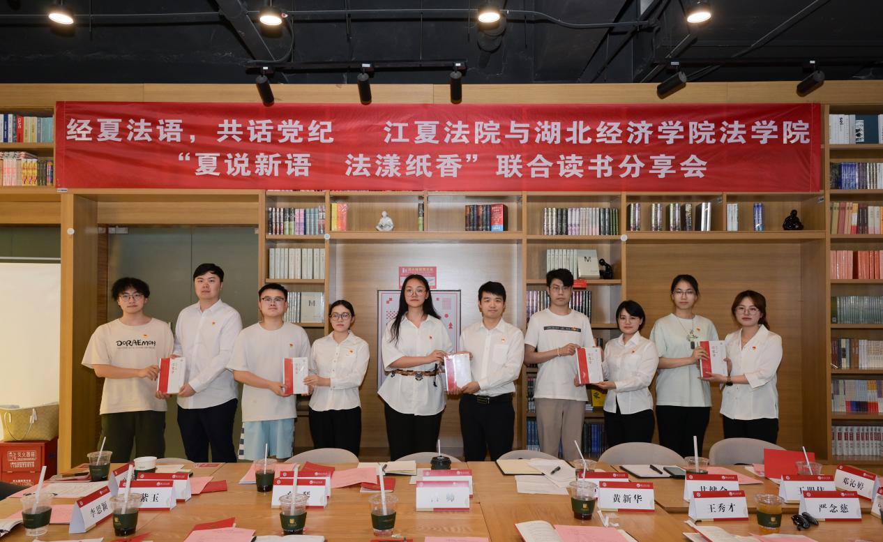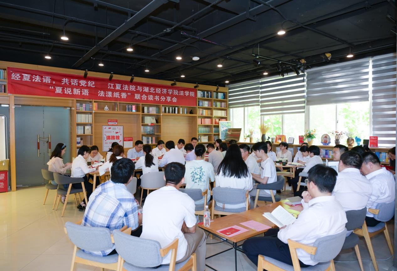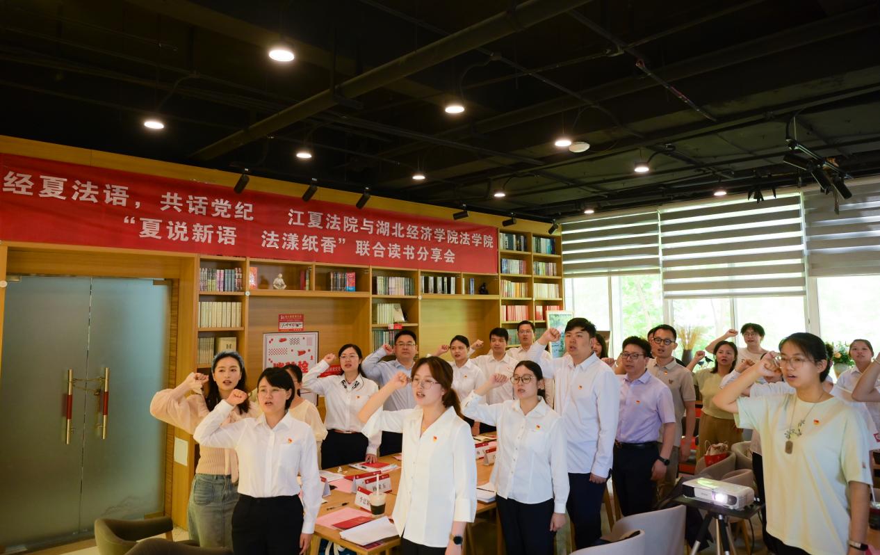 本网本网讯 5月14日,买球官网与江夏区人民法院联合举办“经夏法语,共话党纪”党纪学习联合读书分享会,江夏区法院党组成员、副院长许方芳,副院长罗文君(挂职)以及法院干警代表一行人参加活动,买球的app排行榜前十名推荐党委书记杨专,副书记钟彦姝及买球的app排行榜前十名推荐教工党员、学生党员代表参加活动。