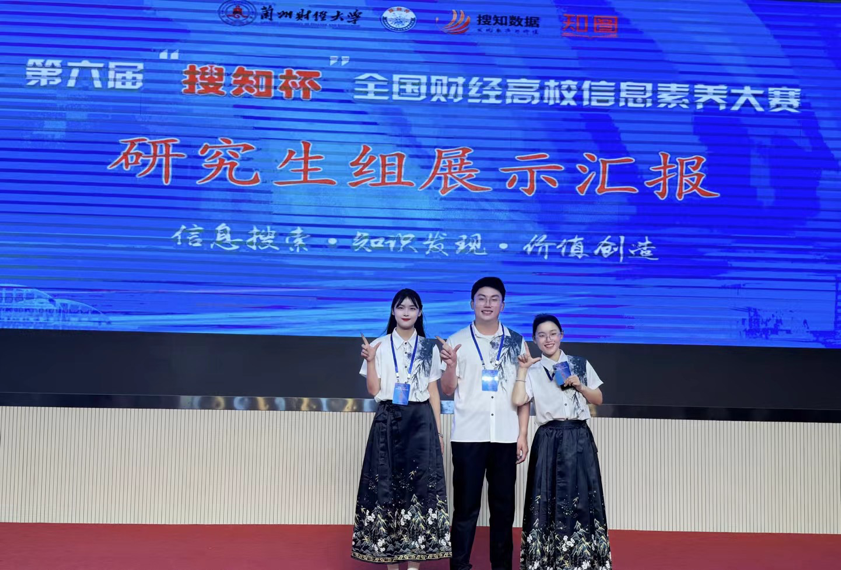 本网讯(通讯员:张兆旭)525日至526日,第六届“搜知杯”全国财经高校信息素养大赛总决赛在兰州财经大学举办。经过两天随机课题报告制作、考试答题、汇报展示三个阶段的激烈角逐,买球官网研究生代表张兆旭所在十大正规买球的app排行榜研究生代表队最终在来自全国38所高校代表队中脱颖而出,荣获研究生组校史最好成绩团体二等奖。