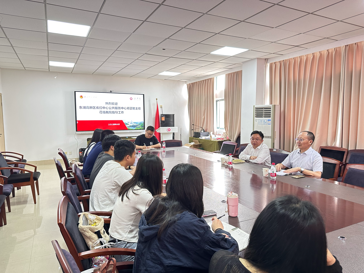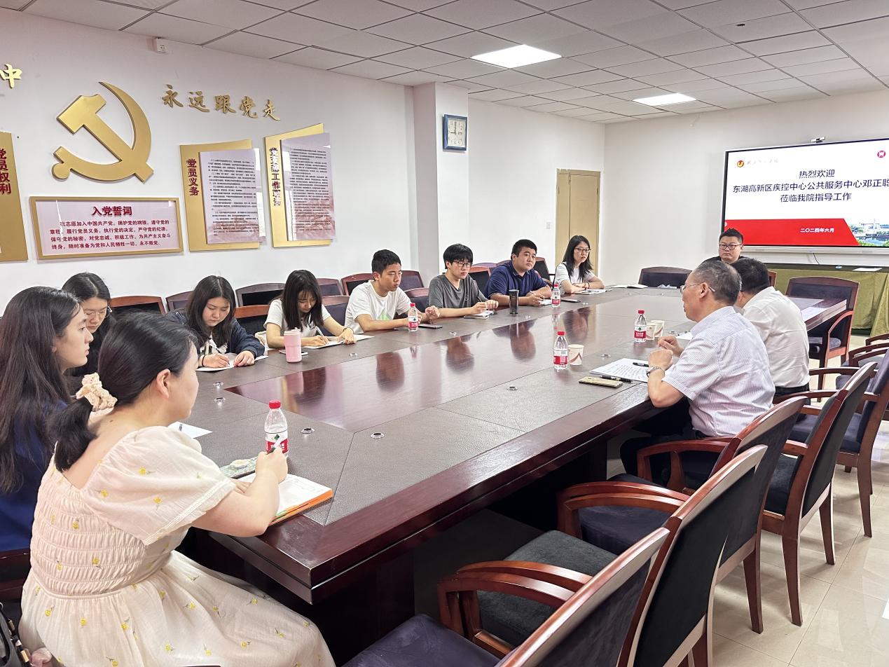 为促进买球官网学科融合工作,2024年6月1日,东湖高新区疾控中心公共服务中心主任邓正聪主任莅临买球官网,就正在承担的医患关系满意度调查项目和医学与法学融合的前沿问题等方面进行了深入指导。院团委书记司马子鸣和本科生调研团队代表、硕士研究生代表等参加交流。