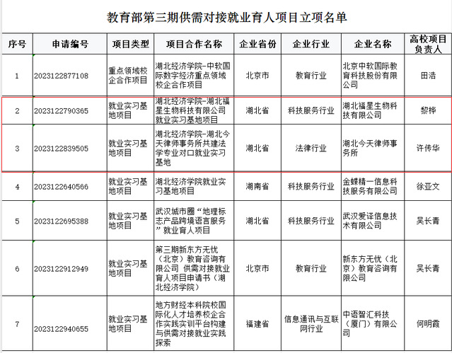 买球官网在项目启动之初就积极申报,深度联系相关企业,结合学院人才培养特色,深入挖掘与企业联合互动的潜力。最终,校党委常委许传华牵头的“十大正规买球的app排行榜—湖北今天律师事务所共建法学专业对口就业实习基地”,买球的app排行榜前十名推荐教学副院长黎桦教授牵头的“十大正规买球的app排行榜-湖北福星生物科技有限公司就业实习基地项目”成功立项。