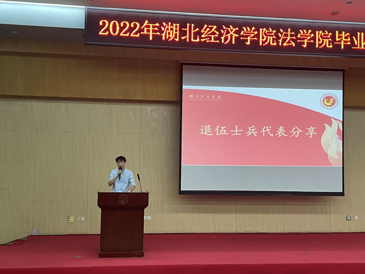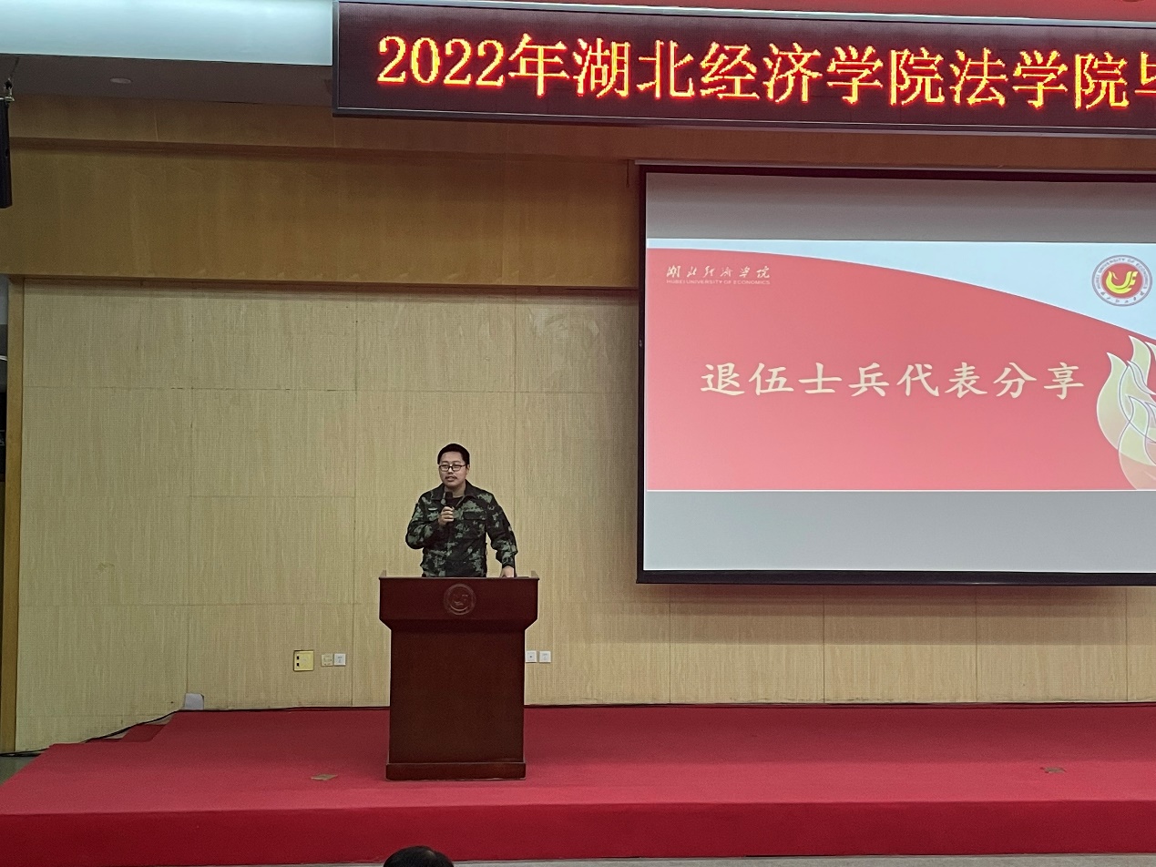 2名退伍士兵代表向同学们介绍了国家对入伍大学生的优待政策,鼓励同学们响应祖国召唤,献身国防大业,为同学们拓宽了就业渠道。