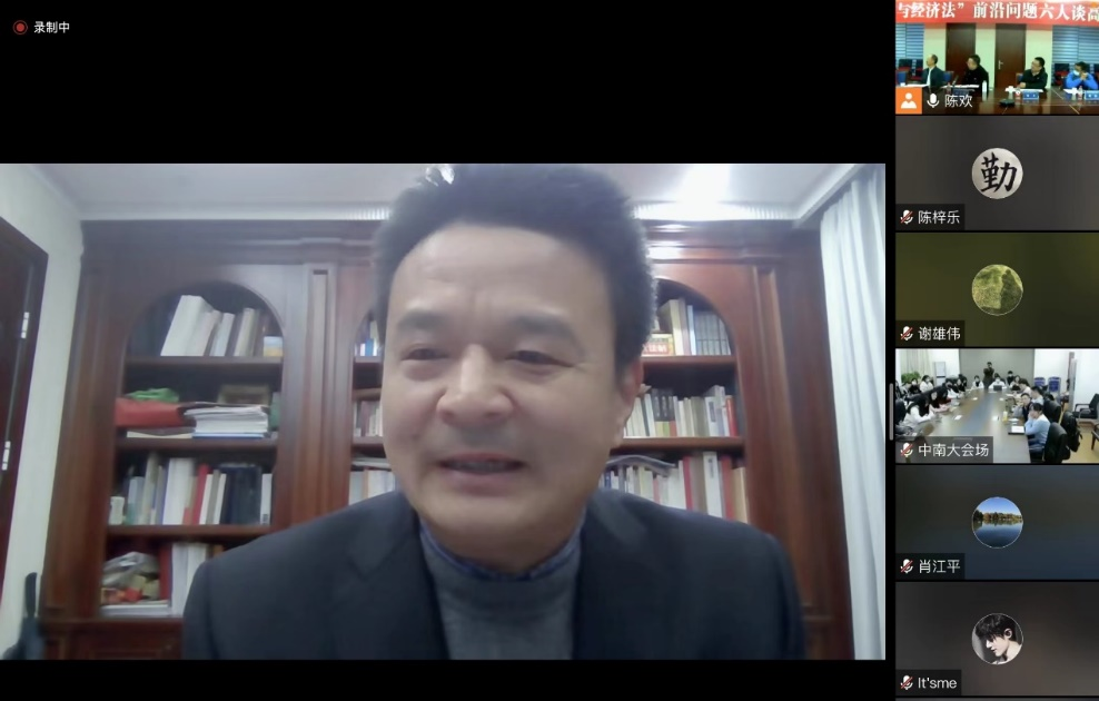 本网讯(通讯员:黎欢欢)2022年11月17日,十大正规买球的app排行榜党委副书记,法学学科带头人刘大洪教授主持召开“市场经济与经济法”前沿问题“六人谈”高端圆桌会议。《中国法学》副总编辑王莉萍、北京大学竞争法研究中心主任肖江平教授、武汉大学竞争法与竞争政策研究中心主任孙晋教授、《法商研究》副编审翟中鞠、华南理工大学买球的app排行榜前十名推荐院长蒋悟真教授、广东外语外贸大学买球的app排行榜前十名推荐院长陈云良教授、广东财经大学研究生院院长谢雄伟教授等7名专家线上出席,买球的app排行榜前十名推荐党政领导班子和部分教师参会。