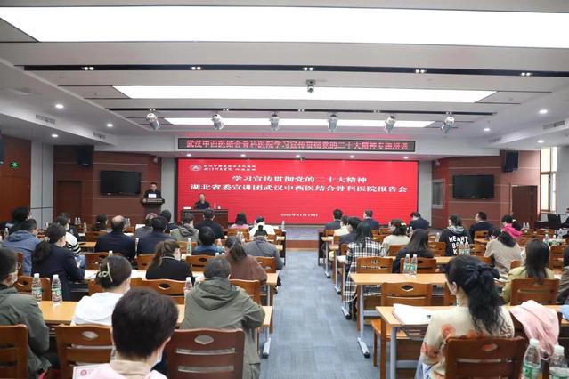 本网讯(通讯员 李紫玲)11月19日上午,学习贯彻党的二十大精神湖北省委宣讲团成员、买球的app排行榜前十名推荐教授、湖北省卫生健康法学会副会长兼秘书长黎桦来到672医院作党的二十大精神宣讲报告。医院党总支委员、院领导、中层干部、全体党员、入党积极分子近60人参加报告会。医院党总支书记蔡兵主持会议。