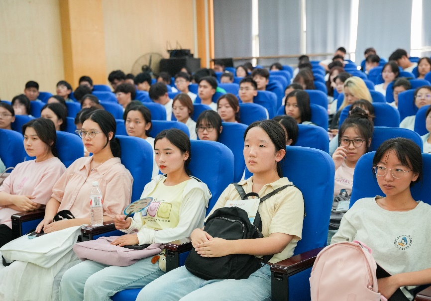 郭老师诙谐幽默的话语,专业通俗的讲解风格,与学生轻松有效的互动,让学生对未来的大学生活充满了期待。