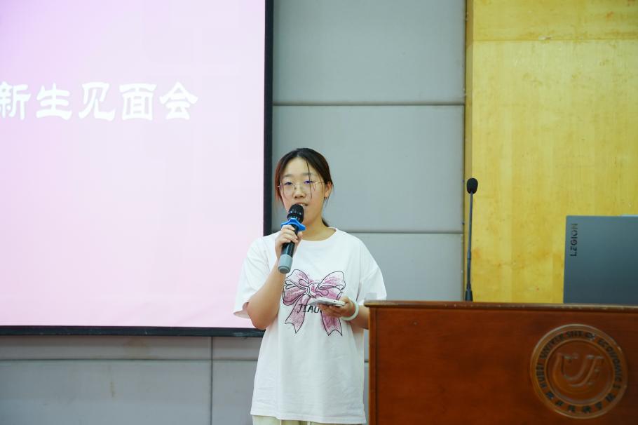 新生代表张熙雯表达了自己对大学生活的憧憬和未来的奋斗目标,她认为同学们应当尽快适应大学生活,勤奋好学、严于律己,在人生的新阶段创造出属于自己的精彩诗篇。