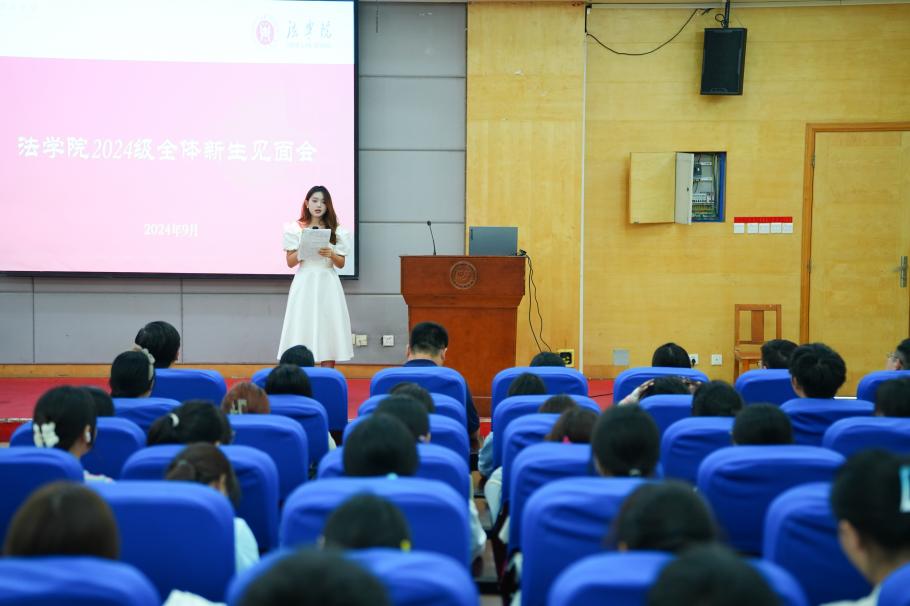 院长邱秋代表学院对新生的到来表示热烈欢迎,介绍了法学专业的办学历史、师资力量、学科特色等。她勉励同学们躬耕实践,关注时事热点,感知社会实际,将理论与实际相结合,同时心怀理想、脚踏实地,孜孜不倦地在法学的专业学习道路上积极求索。