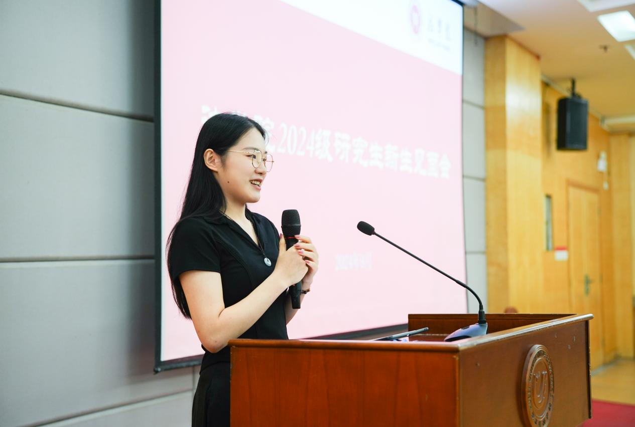 老生代表张嘉宁为新生分享了自己在研究生期间的成长故事和宝贵经验,鼓励新生们努力学习、充实自我,为同学们作为研究生的学习生活提供了有益借鉴。