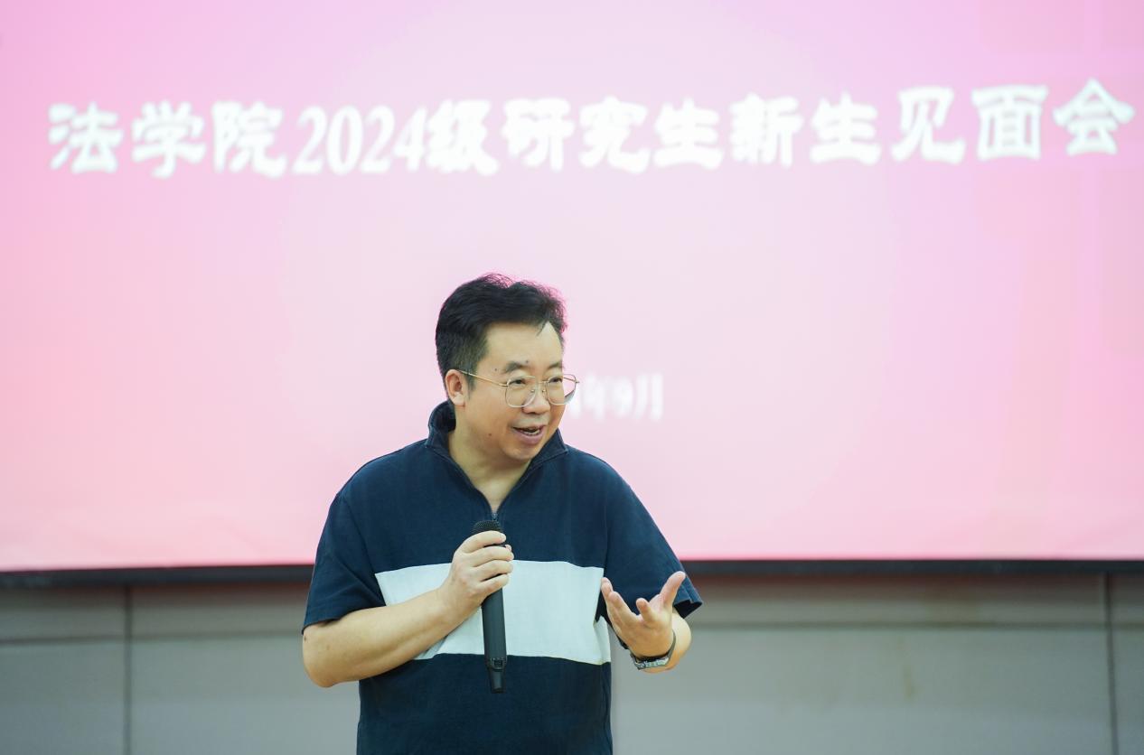 教师代表刘大洪教授向研究生发表寄语,指出社会走入互联网时代,一系列法律变革正在产生,同学们在新时代开展法律学习要紧跟时代步伐,加强知识更新,他也向学生们提出了教学相长的美好愿景,祝福新生们在十大正规买球的app排行榜的学习生活里一切顺利。