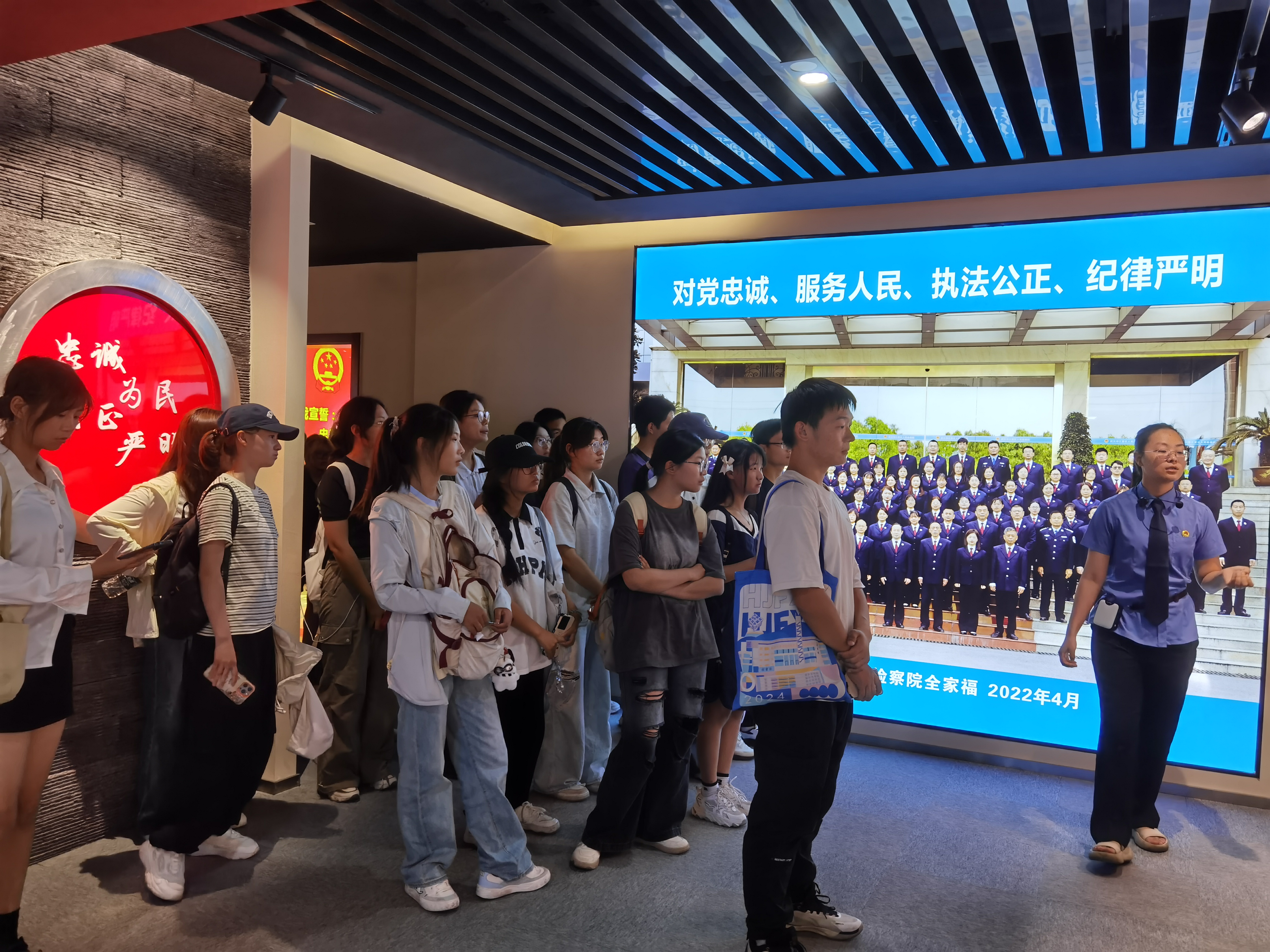同学们在干警的带领下,参观了江夏区人民检察院的检察文化展厅,深入了解了检察院的历史沿革、职责使命和文化建设。