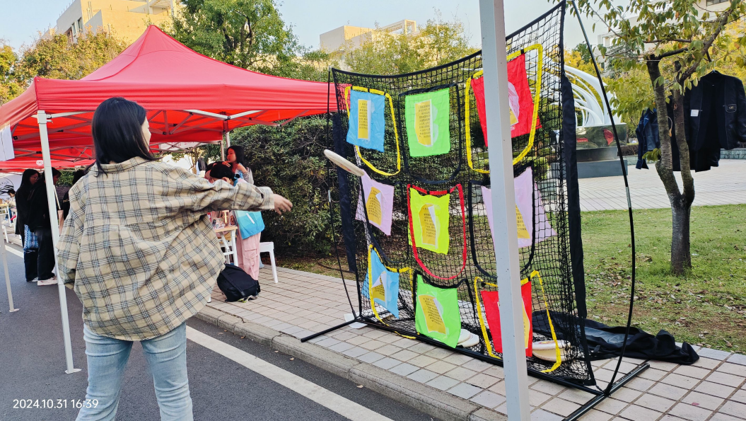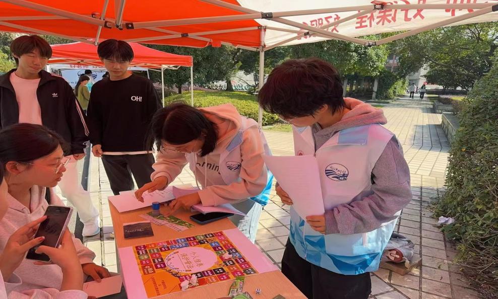在志愿者的带领下,同学们十分热情的参与到我们的活动当中,体验了“连连看”“飞行棋”以及投掷飞盘模拟打击违法行为的活动。在参与完成所有的活动后,由志愿者为同学们盖上我们特制的印章,集齐五个印章,便可至兑奖处参与抽奖并发放我们制作的个人信息保护法宣传手册。