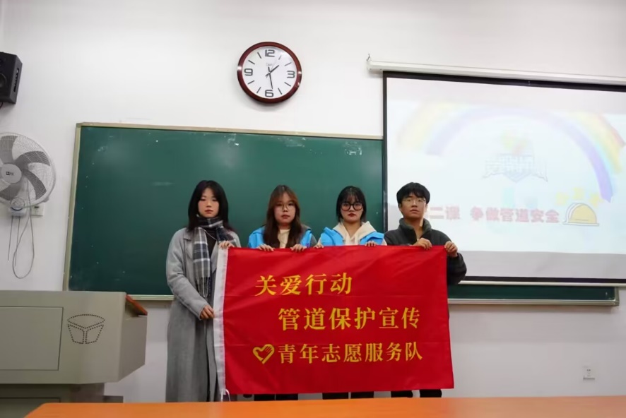 本网讯(通讯员:王煦坤)为提高同学们对管道安全的认识,11月24日和12月8日“安全童行”管道宣教志愿服务队分别在法学2442班、法学2443班和法学2444班进行了管道安全宣教活动。
