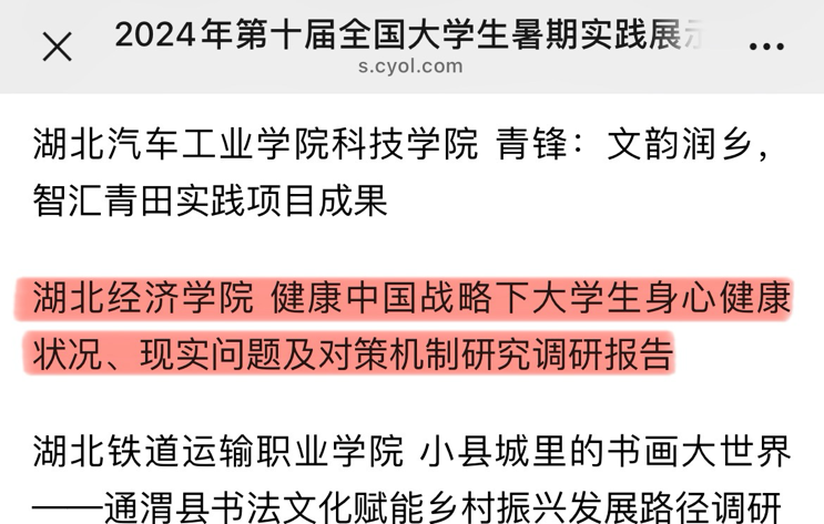 经过校方推荐、团队自荐、网络展示等环节,十大正规买球的app排行榜买球的app排行榜前十名推荐当代大学生身心健康状况调研团队撰写的“健康中国战略下大学生身心健康状况、现实问题及对策机制研究调研报告”从众多参赛作品中脱颖而出,成功入选2024年第十届全国大学生暑期实践展示活动案例。