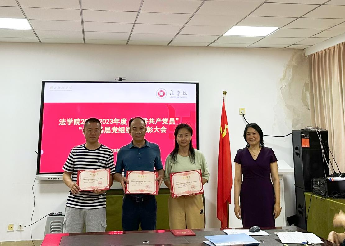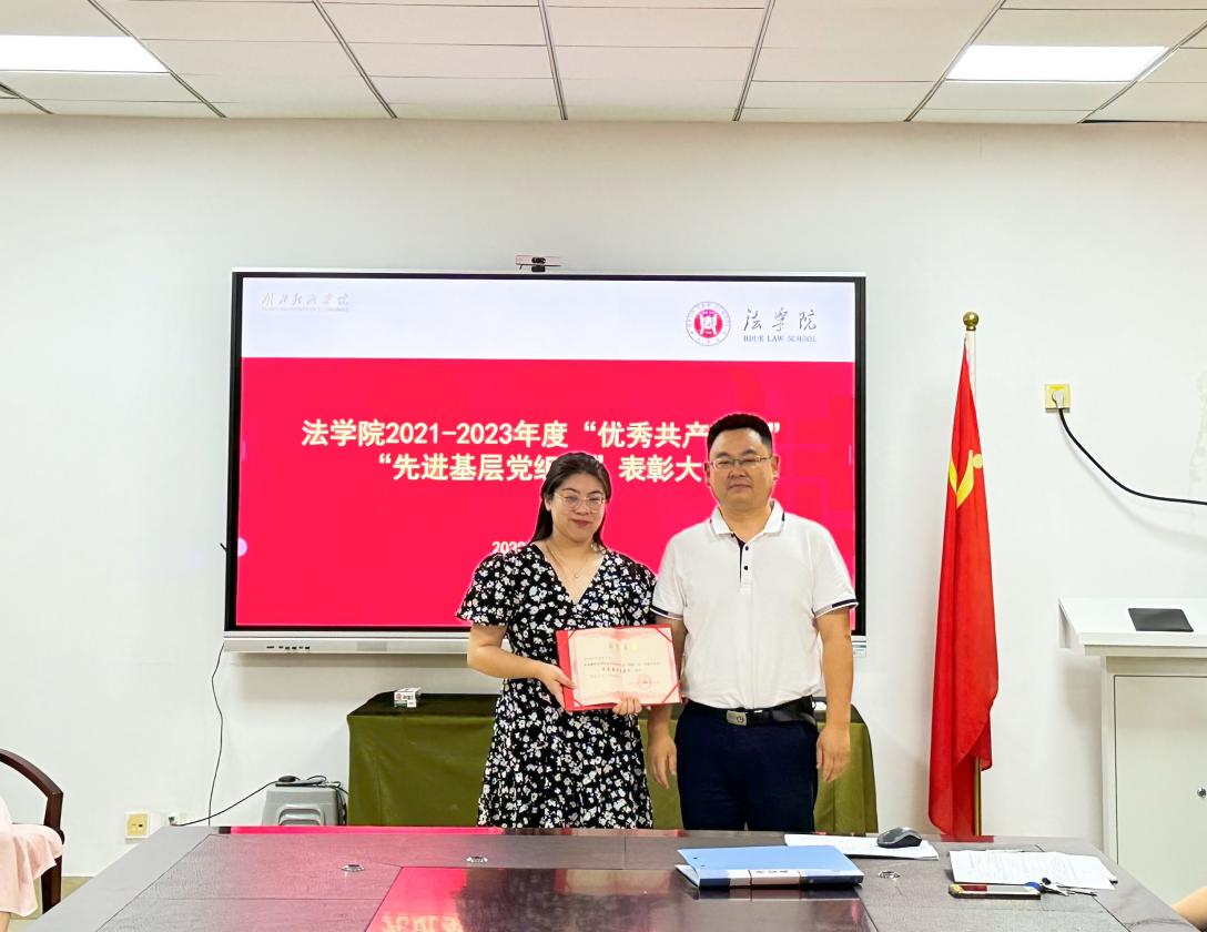 黎桦宣读《买球的app排行榜前十名推荐关于表彰2021-2023年度优秀共产党员和先进基层党组织的决定》,授予汤建辉、何再涛、严念慈三位同志为“优秀共产党员”,授予经济法学系党支部为“先进基层党组织”荣誉称号。