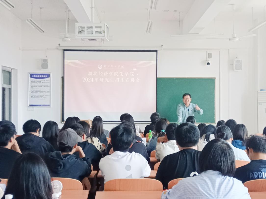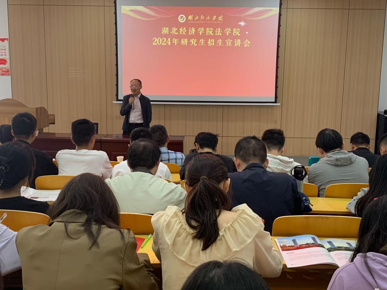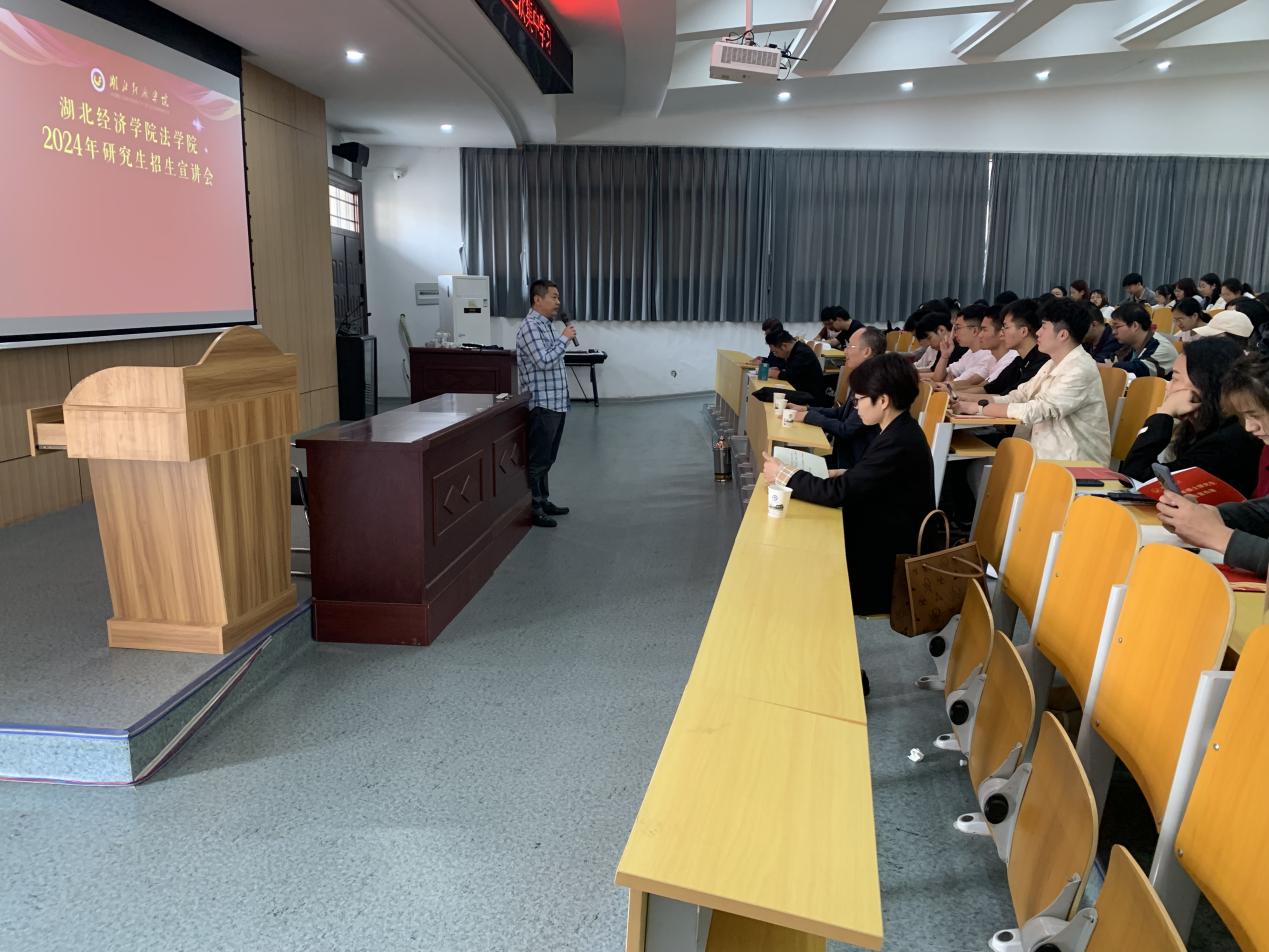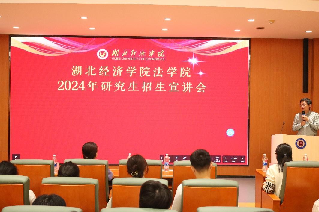 2023年10月19日中午12:30-13:30,买球官网副院长王腾副教授、青年教师李培培和学生助理范琳琳共赴湖北商贸学院进行法律硕士研究生招生宣讲。本次招生宣讲会在湖北商贸学院图书馆一楼报告厅举行,由湖北商贸学院经济学院陈靓秋院长主持,经济学院2020级、2021级学生参加。