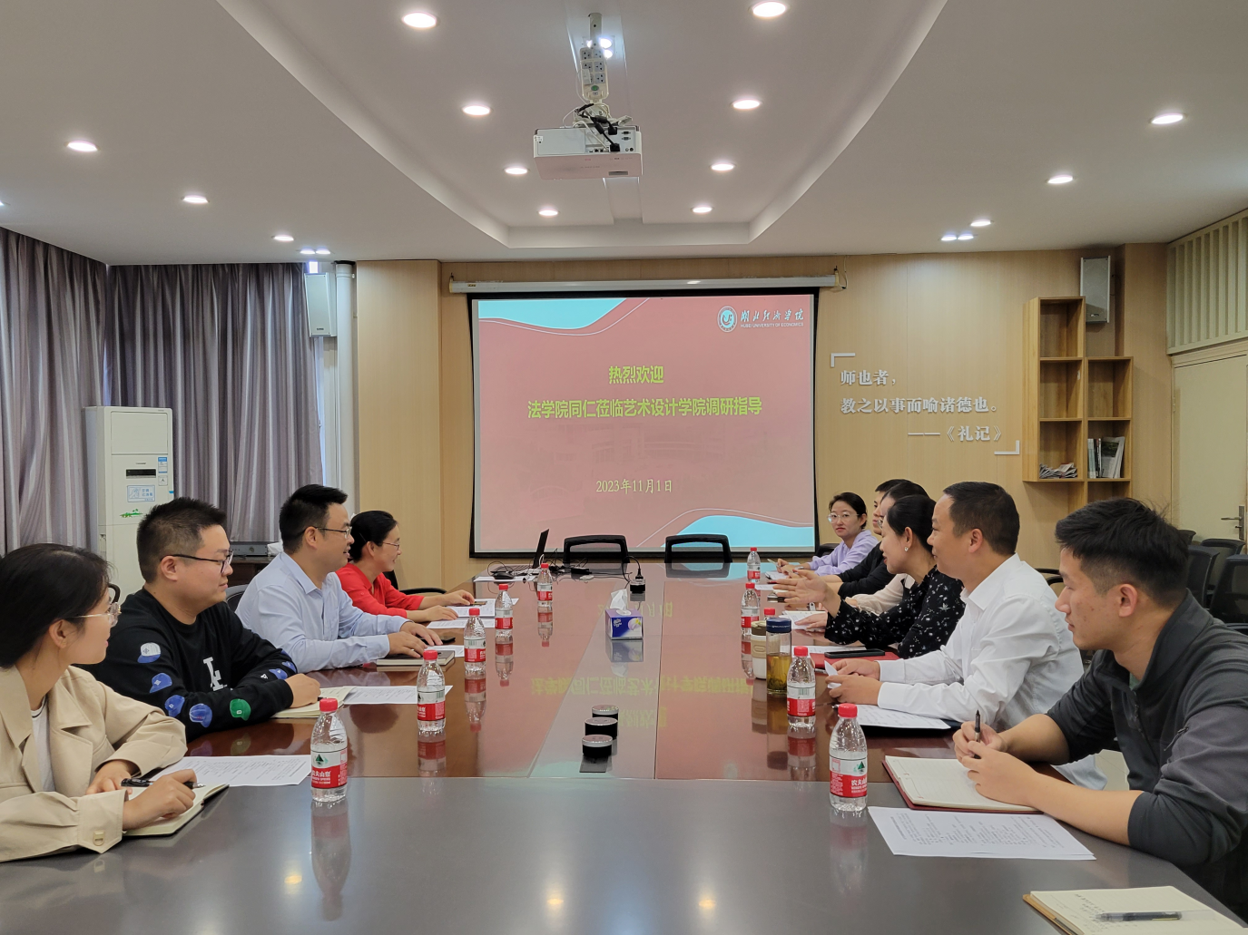 本网讯(通讯员:司马子鸣)为进一步构建“新财经”教育改革下的“大思政”工作格局,凝聚“新财经”教育改革共识,探讨人才培养模式改革的实践路径,加强辅导员队伍建设,着力打造一支牢记“为党育人,为国育才”初心使命,践行“立德树人”根本任务的辅导员队伍。11月1日下午,党委书记杨专、副书记钟彦姝一行4人前往艺术设计学院调研交流校友及学生工作。艺术设计学院党委书记蒋琼、党委副书记万庆召以及全体辅导员参加会议,调研交流会由艺术设计学院党委书记蒋琼主持。