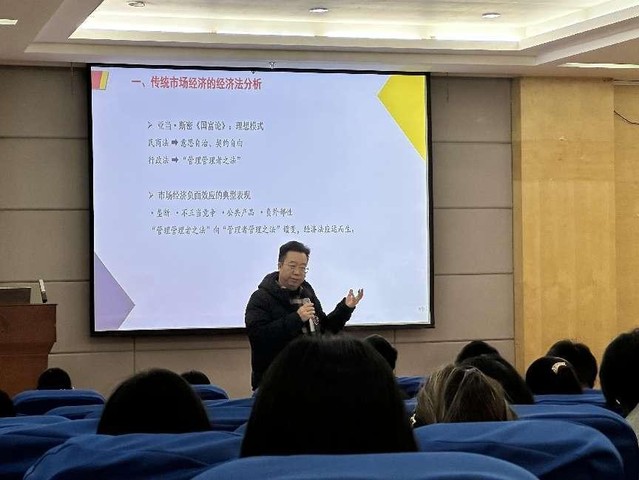 本网讯(通讯员 陈悦)12月8日,国务院政府特殊津贴专家,湖北经济法学首席法律咨询专家,中南财经政法大学经济法学博士生导师,十大正规买球的app排行榜校学术委员会主任、法学学科带头人刘大洪教授做客藏龙讲坛,开展以从“有限”到“有为”:市场经济、中国特色、数字时代经济法的“新面相”为题的主题讲座。讲座由买球的app排行榜前十名推荐院长邱秋教授主持,买球的app排行榜前十名推荐全体研究生及部分本科生参与讲座。